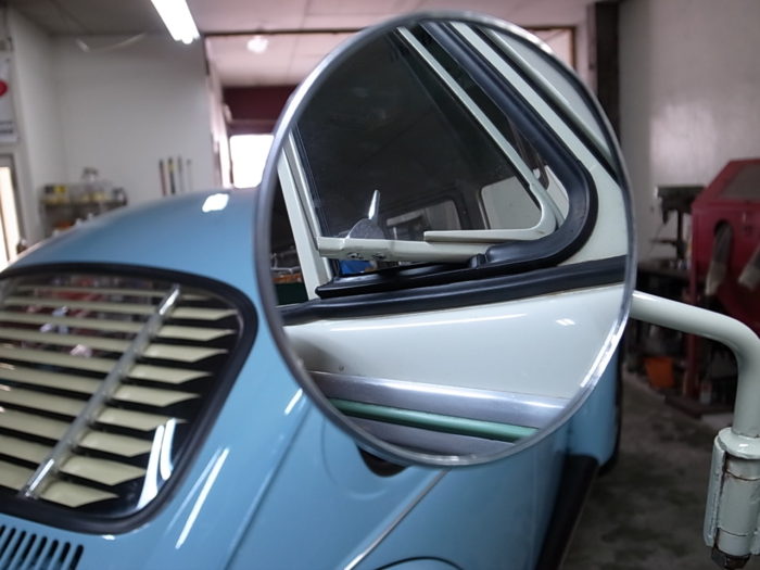 平面の見辛かったミラーを凸面鏡で広い視界を確保しました。